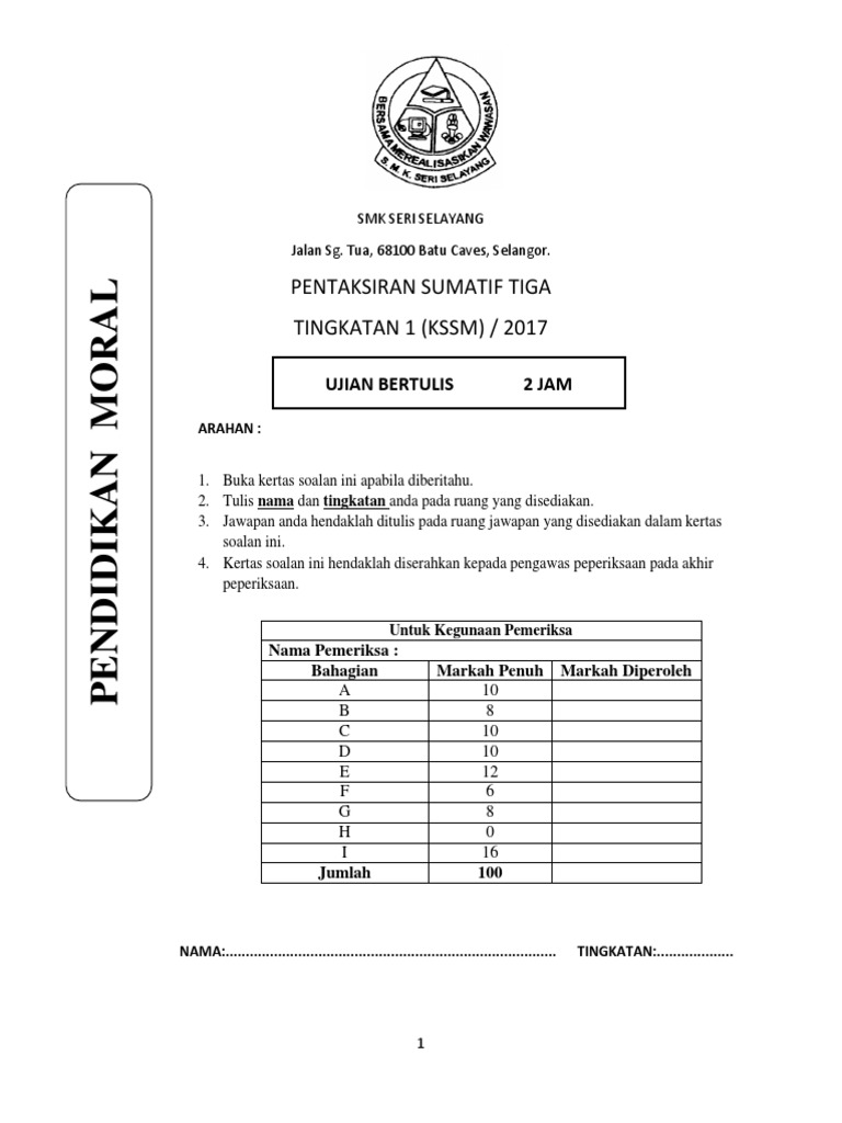 Download Ebook Tingkatan 2 Tahun 2018 Soalan. Soalan Ujian Pendidikan Moral Tingkatan 3 Umi Wish. Soalan pendidikan-moral march 2014 Christie Mh.